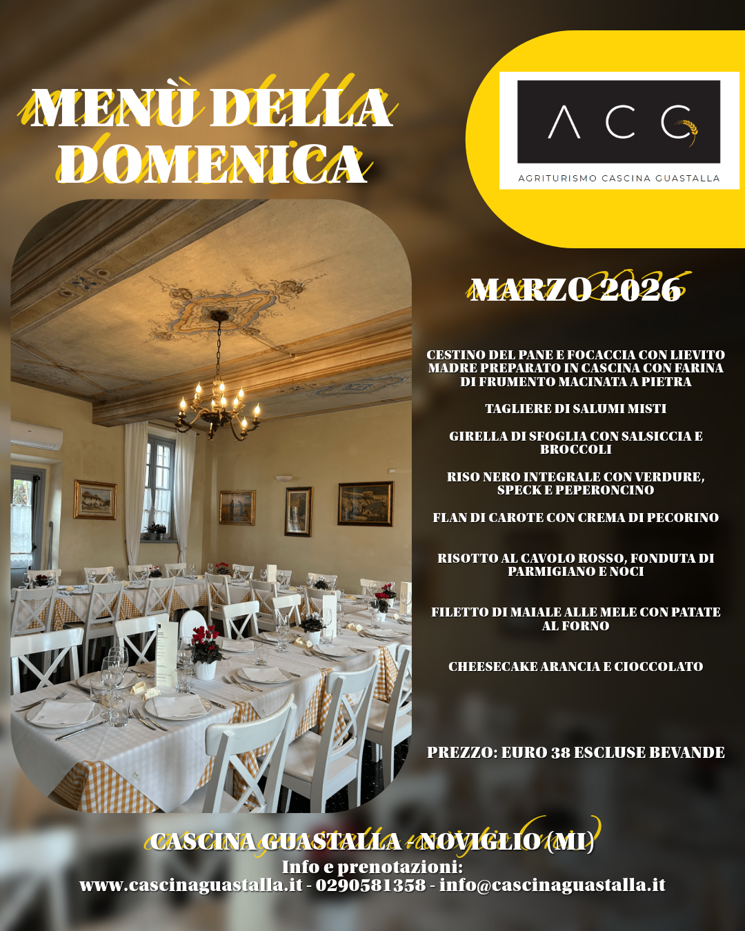 Per uscire dalla frenesia della città di Milano ed evitare le preoccupazioni del mondo di tutti i giorni non serve andare tanto lontano. Bastano solo due ingredienti: la Cascina Guastalla e i prodotti che ti può offrire. Due sono i valori più importanti: la famiglia e la genuinità dei nostri prodotti. La commistione di questi elementi dà origine alla nostra idea di agriturismo: la creazione di eventi che possano richiamare culture diverse da quella tipica dell’Italia Settentrionale, riprodotte grazie all’utilizzo di prodotti provenienti dal nostro territorio. Il tutto sarà gestito da una famiglia, che vi farà sentire accolti come membri speciali di questa. I nostri prodotti saranno provenienti dall’orto e, per ampliare la gamma delle offerte, anche dalle aziende che lavorano nel Parco del Ticino. Per scoprire di più VAI AGLI EVENTI
